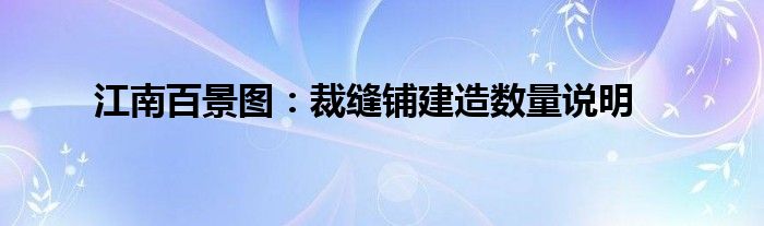 江南百景图裁缝铺建造数量推荐建造数量:3—4个。