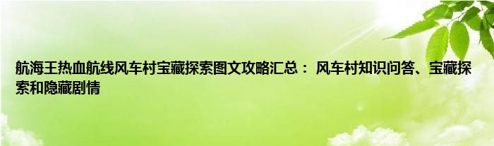航海王热血航线风车村宝藏探究图文攻略汇总: 风车村知识问答、宝藏探究和隐藏剧情1