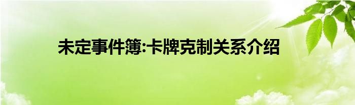 小编今天给各位玩家朋友们带来的是未定事件簿:卡牌克制关系介绍,有记得的玩家朋友吗?不记得也没有关系,小编已经帮助大家把未定事件簿:卡牌克制关系介绍找了出来,你只需要动动你的小手就可以轻松知道啦,快来瞧一瞧吧。