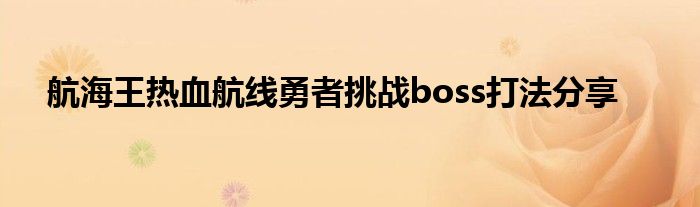 航海王热血航线这个游戏中,有很多的boss,这些boss都比较难打,有的玩家不知道怎么打。比如说,勇者挑战boss怎么打,有不少的玩家都想知道答案,今天小编就为大家带来航海王热血航线勇者挑战boss打法攻略,希翼可以帮到玩家。
