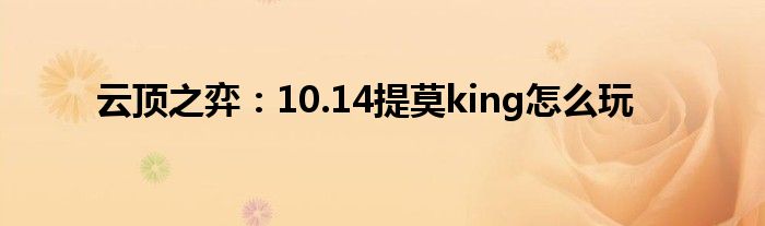 小编今天给各位玩家朋友们带来的是云顶之弈:10.14提莫king怎么玩,有记得的玩家朋友吗?不记得也没有关系,小编已经帮助大家把云顶之弈:10.14提莫king怎么玩找了出来,你只需要动动你的小手就可以轻松知道啦,快来瞧一瞧吧。