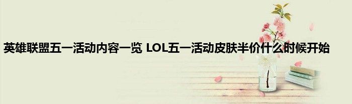 五一要到了,各个游戏一经开始预热五一活动了,有玩家在问这次五一,LOL会不会开启五一皮肤半价活动,什么时候开始,有哪些皮肤会参加活动,MSI要来了,除了皮肤半价之外还有什么活动呢,下面就来尾随小编一起来看一下详细内容吧。