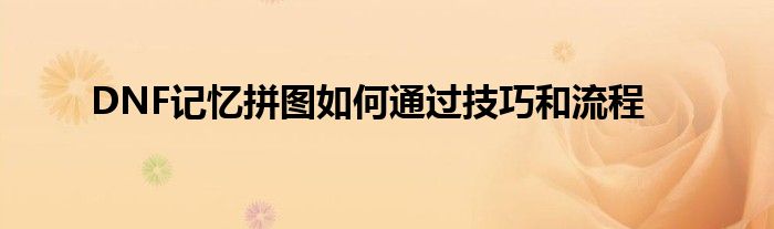 DNF记忆拼图如何通过技巧和流程