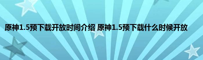 原神马上迎来最新的1.5版本,这次版本会推出两位给新的角色,此外还带来了非常多的新活动,还是挺值得期待一手的,而这次1.5版本原神马上开放预下载,玩家可以提前下好1.5版本,等到新版本一开放就不用等待更新,可以直接进入游戏,下面就来看一下预下载的开放时间吧。