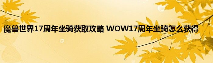 魔兽世界不知不觉已经17个年头了,很多玩魔兽世界的玩家已经早就A了游戏回归了现实,以往种种,历历在目,而这次17周年,官方也为玩家准备了一些礼物,比如说周年坐骑,这个坐骑叫龙鹰,很多玩家在问这个坐骑怎么获得,下面就来一起看看吧。