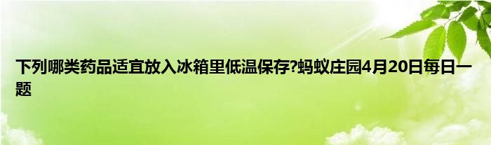大家好,今天是4月20日,今天的问题和药品有关,问的是下列哪类药品适宜放入冰箱里低温保存?胰岛素属于蛋白质激素,问题的答案是什么呢,小编收集了有关内容,下面就来尾随小编一起来看一下详细的答案吧。