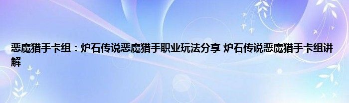 以上就是恶魔猎手卡组:炉石传说恶魔猎手职业玩法分享,炉石传说恶魔猎手卡组讲解的推荐,相信通过恶魔猎手卡组:炉石传说恶魔猎手职业玩法分享,炉石传说恶魔猎手卡组讲解这篇文章能帮到你,也欢迎对游戏很感兴趣小伙伴们一起来探讨。