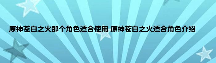 原神苍白之火是1.5版本新上线的物理圣遗物,因此受到很多玩家们的关注,那么原神苍白之火适合谁用?蚕豆小编为您带来原神苍白之火适合角色介绍。