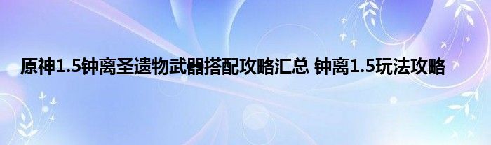 原神1.5版本就要来了,钟离有了新的玩法,很多玩家在问1.5版本的钟离要搭配什么圣遗物或者武器,有没有什么能发生质变的武器装备给钟离,下面就来尾随小编一起来看一下详细的攻略内容吧。