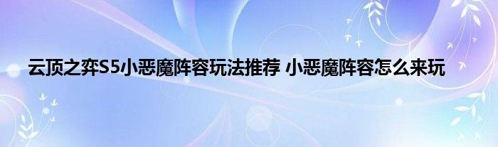 云顶之弈S5版本更新了之后给玩家们带来了很多新的内容,其中就包括了一些新的角色,在这这个版本里面玩家可以组建一个小恶魔的阵容,不过很多玩家都不知道小恶魔阵容的玩法是什么了,那下面就让小编给玩家带来小恶魔阵容的打法介绍,希翼能够给需要的玩家们带来一些帮助。