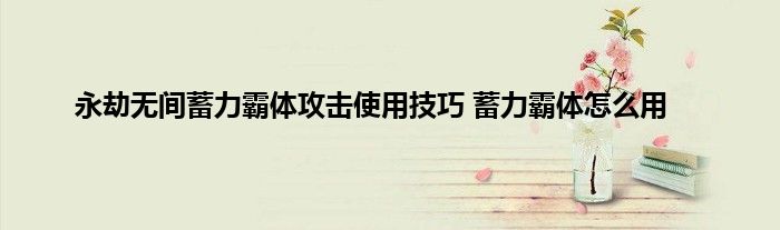 永劫无间这个游戏在战斗的时候会有很多技巧供玩家来使用,当玩家熟练应用了这些技巧之后你的战斗能力会变得更强。其中蓄力霸体就是一个非常使用的战斗技巧了,不少玩家都想要知道在游戏里面如何使用好蓄力霸体。那下面就让小编给玩家带来详细的使用方法介绍,希翼能够帮到大家。