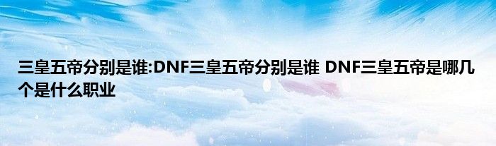 今天来聊聊关于三皇五帝分别是谁:DNF三皇五帝分别是谁 DNF三皇五帝是哪几个是什么职业的文章,游戏是很多人的选择,但是游戏玩多了也会身心疲惫,现在就为大家来简单介绍下三皇五帝分别是谁:DNF三皇五帝分别是谁 DNF三皇五帝是哪几个是什么职业,希望对各位小伙伴们有所帮助。