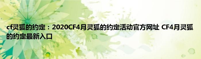 以上就是小编为大家带来的2020CF4月灵狐的约定活动地址和内容详情,希望对各位玩家有所帮助。