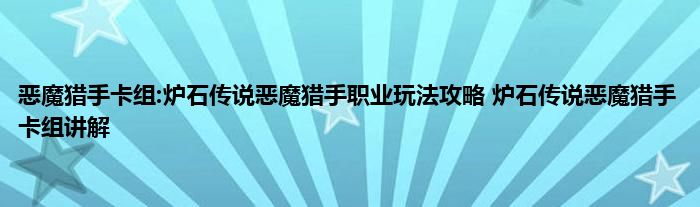 今天来聊聊关于恶魔猎手卡组:炉石传说恶魔猎手职业玩法攻略,炉石传说恶魔猎手卡组讲解的文章,游戏是很多人的选择,但是游戏玩多了也会身心疲惫,现在就为大家来简单介绍下恶魔猎手卡组:炉石传说恶魔猎手职业玩法攻略,炉石传说恶魔猎手卡组讲解,希望对各位小伙伴们有所帮助。