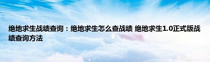 今天来聊聊关于绝地求生战绩查询:绝地求生怎么查战绩,绝地求生1.0正式版战绩查询方法的文章,游戏是很多人的选择,但是游戏玩多了也会身心疲惫,现在就为大家来简单介绍下绝地求生战绩查询:绝地求生怎么查战绩,绝地求生1.0正式版战绩查询方法,希望对各位小伙伴们有所帮助。