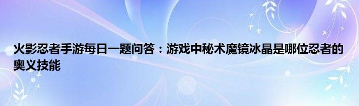 以上就是火影忍者手游每日一题问答:游戏中秘术魔镜冰晶是哪位忍者的奥义技能的推荐,相信通过火影忍者手游每日一题问答:游戏中秘术魔镜冰晶是哪位忍者的奥义技能这篇文章能帮到你,也欢迎对游戏很感兴趣小伙伴们一起来探讨。