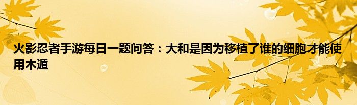 小编今天给各位玩家朋友们带来的是火影忍者手游每日一题问答:大和是因为移植了谁的细胞才能使用木遁,有记得的玩家朋友吗?不记得也没有关系,小编已经帮助大家把火影忍者手游每日一题问答:大和是因为移植了谁的细胞才能使用木遁找了出来,你只需要动动你的小手就可以轻松知道啦,快来瞧一瞧吧。