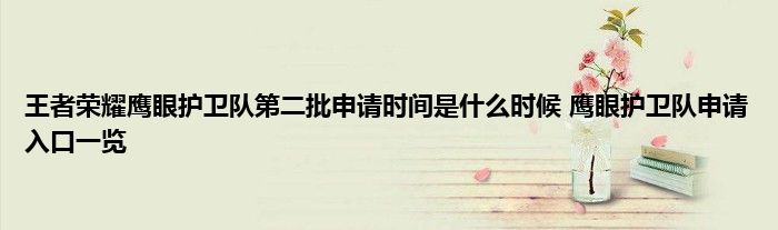 王者荣耀鹰眼护卫队第二批申请时间: