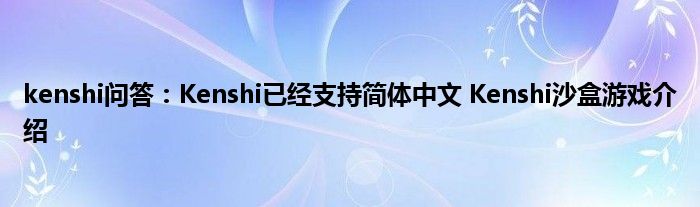 以上就是kenshi问答:Kenshi已经支持简体中文,Kenshi沙盒游戏介绍的推荐,相信通过kenshi问答:Kenshi已经支持简体中文,Kenshi沙盒游戏介绍这篇文章能帮到你,也欢迎对游戏很感兴趣小伙伴们一起来探讨。