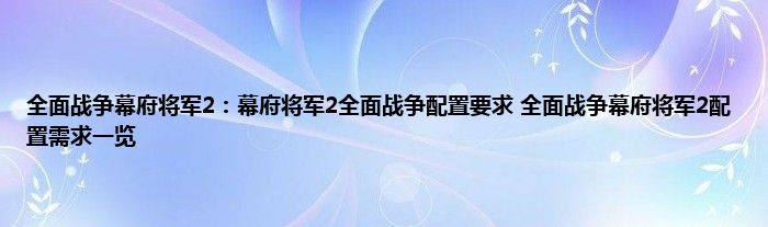以上就是全面战争幕府将军2:幕府将军2全面战争配置要求,全面战争幕府将军2配置需求一览的推荐,相信通过全面战争幕府将军2:幕府将军2全面战争配置要求,全面战争幕府将军2配置需求一览这篇文章能帮到你,也欢迎对游戏很感兴趣小伙伴们一起来探讨。