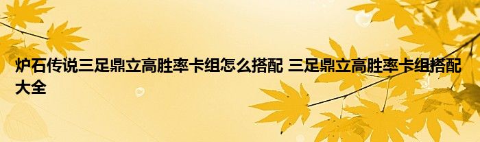 炉石传说三足鼎立高胜率卡组怎么搭配?在炉石传说的游戏中,三足鼎立的卡组非常多,各种族的卡组构建都不同,接下来蚕豆小编就为大家带来炉石传说三足鼎立的最强卡组搭配方案推举吧。