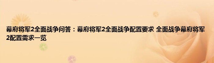 今天来聊聊关于幕府将军2全面战争问答:幕府将军2全面战争配置要求,全面战争幕府将军2配置需求一览的文章,游戏是很多人的选择,但是游戏玩多了也会身心疲惫,现在就为大家来简单介绍下幕府将军2全面战争问答:幕府将军2全面战争配置要求,全面战争幕府将军2配置需求一览,希望对各位小伙伴们有所帮助。