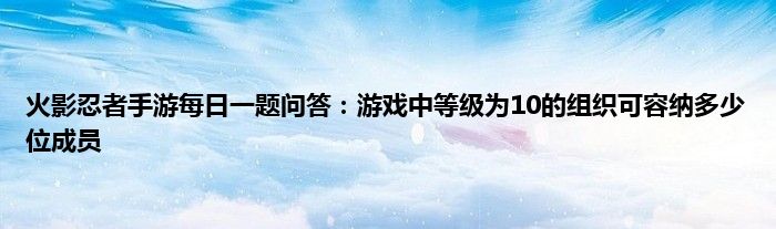 以上就是火影忍者手游每日一题问答:游戏中等级为10的组织可容纳多少位成员的推荐,相信通过火影忍者手游每日一题问答:游戏中等级为10的组织可容纳多少位成员这篇文章能帮到你,也欢迎对游戏很感兴趣小伙伴们一起来探讨。