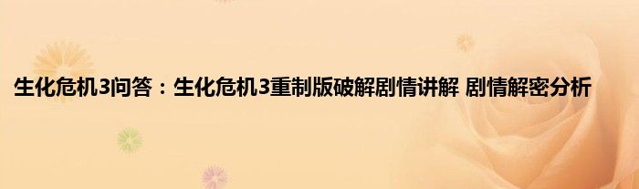 小编今天给各位玩家朋友们带来的是生化危机3问答:生化危机3重制版破解剧情讲解,剧情解密分析,有记得的玩家朋友吗?不记得也没有关系,小编已经帮助大家把生化危机3问答:生化危机3重制版破解剧情讲解,剧情解密分析找了出来,你只需要动动你的小手就可以轻松知道啦,快来瞧一瞧吧。