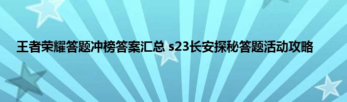 王者荣耀S23赛季要到了,长安探秘活动这次有一个冲榜答题的玩法,计时答题,答对的玩家可以获得丰富的奖励,包括红包、周边、皮肤等,还是很值得来玩一玩的,不过有很多玩家不知道答案是什么,下面就来跟着小编一起来看一下具体的答案吧。