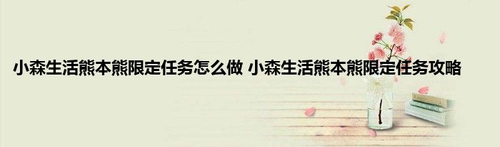 小森生活熊本熊限定任务怎么做?小森生活和熊本熊开启了联动,可以活动熊本熊的限定物品和头像框。应该有很多的玩家想要获得这些道具吧。下面是具体的限定任务完成攻略,还不清晰怎么猎取的玩家可以了解一下。