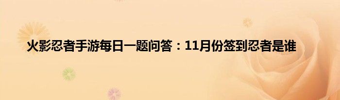 以上就是火影忍者手游每日一题问答:11月份签到忍者是谁的推荐,相信通过火影忍者手游每日一题问答:11月份签到忍者是谁这篇文章能帮到你,也欢迎对游戏很感兴趣小伙伴们一起来探讨。