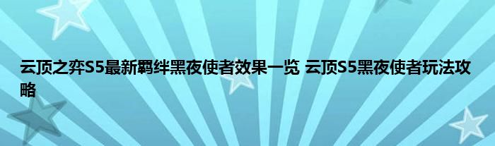 云顶之弈马上迎来S5赛季,新赛季增加了很多的新内容,其中就有新的羁绊效果和英雄,同时也有很多英雄得到了改动和优化,新增了一个黑夜使者的羁绊效果,很多玩家好奇黑夜使者羁绊怎么玩,有哪些英雄,有什么效果,下面就来尾随小编一起来了解一下。