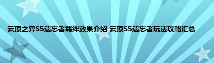 云顶之弈S5遗忘者是S5马上推出的新的羁绊效果,这个羁绊效果包含了一些新的角色,同时也可以搭配出不同的新阵容,这个阵容非常的吃装备,而且是特定的装备,那么具体该怎么玩呢,有什么效果呢,下面就来跟着小编一起来看一下详细内容吧。