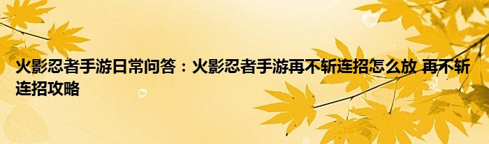 以上就是火影忍者手游日常问答:火影忍者手游再不斩连招怎么放,再不斩连招攻略的推荐,相信通过火影忍者手游日常问答:火影忍者手游再不斩连招怎么放,再不斩连招攻略这篇文章能帮到你,也欢迎对游戏很感兴趣小伙伴们一起来探讨。
