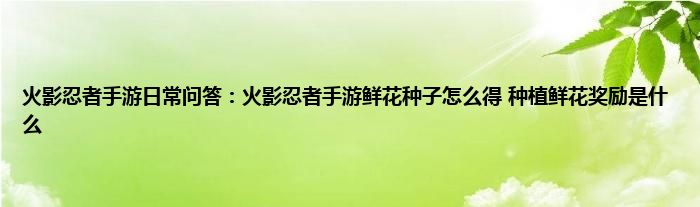 小编今天给各位玩家朋友们带来的是火影忍者手游日常问答:火影忍者手游鲜花种子怎么得,种植鲜花奖励是什么,有记得的玩家朋友吗?不记得也没有关系,小编已经帮助大家把火影忍者手游日常问答:火影忍者手游鲜花种子怎么得,种植鲜花奖励是什么找了出来,你只需要动动你的小手就可以轻松知道啦,快来瞧一瞧吧。