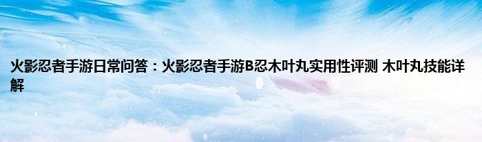 小编今天给各位玩家朋友们带来的是火影忍者手游日常问答:火影忍者手游B忍木叶丸实用性评测,木叶丸技能详解,有记得的玩家朋友吗?不记得也没有关系,小编已经帮助大家把火影忍者手游日常问答:火影忍者手游B忍木叶丸实用性评测,木叶丸技能详解找了出来,你只需要动动你的小手就可以轻松知道啦,快来瞧一瞧吧。
