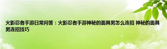 以上就是火影忍者手游日常问答:火影忍者手游神秘的面具男怎么连招,神秘的面具男连招技巧的推荐,相信通过火影忍者手游日常问答:火影忍者手游神秘的面具男怎么连招,神秘的面具男连招技巧这篇文章能帮到你,也欢迎对游戏很感兴趣小伙伴们一起来探讨。