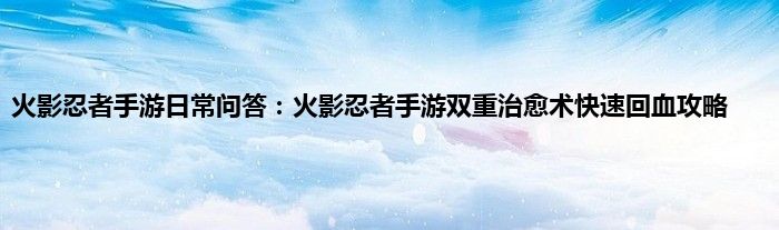 以上就是火影忍者手游日常问答:火影忍者手游双重治愈术快速回血攻略的推荐,相信通过火影忍者手游日常问答:火影忍者手游双重治愈术快速回血攻略这篇文章能帮到你,也欢迎对游戏很感兴趣小伙伴们一起来探讨。