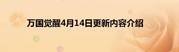 感谢你在百忙之中抽出时间阅读万国觉醒4月14日更新内容介绍这篇文章。你觉得今天万国觉醒4月14日更新内容介绍话题怎么样?关于万国觉醒4月14日更新内容介绍这篇文章的任何评论都可以告诉我。你的每一个建议都是对小编辑的肯定和鼓舞。小编明天会继续给你带来更多的好内容。我希翼你不要错过。感谢支持哟!