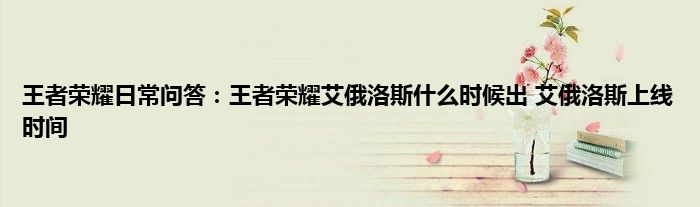 今天来聊聊关于王者荣耀日常问答:王者荣耀艾俄洛斯什么时候出,艾俄洛斯上线时间的文章,游戏是很多人的选择,但是游戏玩多了也会身心疲惫,现在就为大家来简单介绍下王者荣耀日常问答:王者荣耀艾俄洛斯什么时候出,艾俄洛斯上线时间,希望对各位小伙伴们有所帮助。