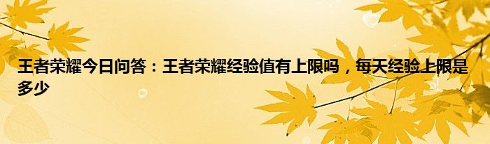 问:王者荣耀经验值有上限吗?每天经验上限是多少?