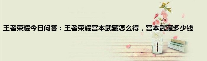 问:王者荣耀宫本武藏怎么得?宫本武藏多少钱?
