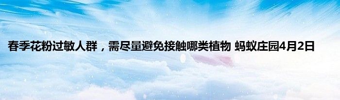 春季花粉过敏人群,需尽量幸免接触哪类植物?春天百花齐放,虽然漂亮,但是也会让有些人苦恼,因为花粉很多。这是支付宝蚂蚁庄园小课堂今日先行发布的4月2日问题,答对即可获得一份180g饲料,那么接下来就让我们一起了解一下正确答案吧!
