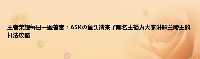 题目:《ASKの鱼头》请来了哪名主播为大家讲解兰陵王的打法攻略