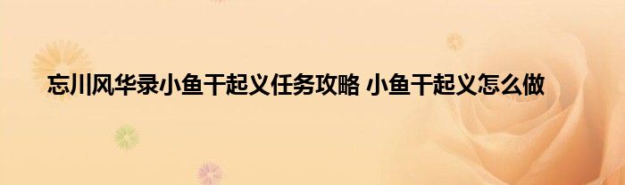 以上就是小编带来的忘川风华录小鱼干起义的全部内容了,希望对大家有所帮助。