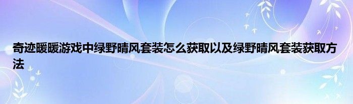 以上就是奇迹暖暖游戏中绿野晴风套装怎么获取以及绿野晴风套装获取方法的推荐,相信通过奇迹暖暖游戏中绿野晴风套装怎么获取以及绿野晴风套装获取方法这篇文章能帮到你,也欢迎对游戏很感兴趣小伙伴们一起来探讨。