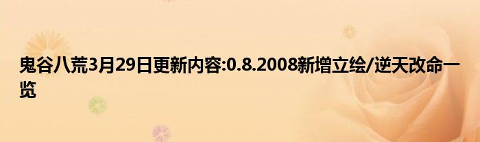 【0.8.2008 版本更新内容】2021年3月29日04时更新