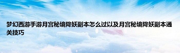小编今天给各位玩家朋友们带来的是梦幻西游手游月宫秘境降妖副本怎么过以及月宫秘境降妖副本通关技巧,有记得的玩家朋友吗?不记得也没有关系,小编已经帮助大家把梦幻西游手游月宫秘境降妖副本怎么过以及月宫秘境降妖副本通关技巧找了出来,你只需要动动你的小手就可以轻松知道啦,快来瞧一瞧吧。