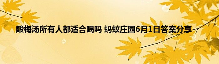 蚂蚁庄园小课堂是一个相当有趣的答题玩法了,每天都会准时给玩家们更新每天的问题,6月1日的最新问题已经带来了,今天的问题就是酸梅汤所有人都适合喝吗?回答正确答案你就可以拿到很多饲料了,那下面就让小编给玩家们讲解一下蚂蚁庄园6月1日答案,以及题目的解析吧。