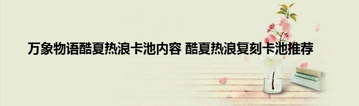 万象物语酷夏热浪盛典复刻卡池已经开启,这次的新卡池基本都是复刻,因此主要针对之前错过了的玩家。那么这次复刻的角色值不值得我们去抽呢?下面就带来抽取建议,一起来看看。